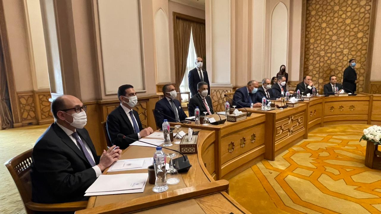 وناقش الجانبان الأوضاع في المنطقة، واتفقا على أهمية استمرار تنسيق جهودهما من أجل دعم الدول الوطنية وأمن شعوب المنطقة واستقرارها، وأكدا في هذا الصدد؛ أهمية العمل العربي المشترك، ودور جامعة الدول العربية في إطار تدعيم آليات العمل العربي المشترك، وفي حل أزمات المنطقة وفق القرارات الدولية ذات الصلة ووفق مبادئ القانون الدولي.