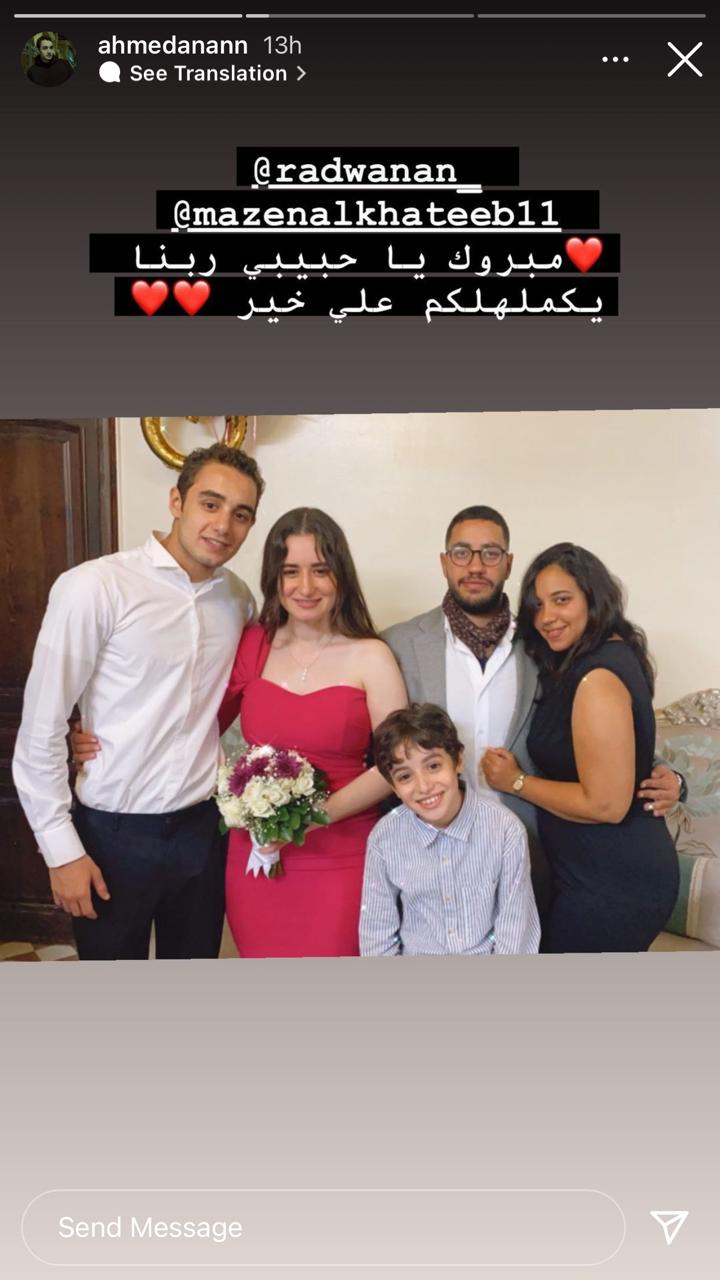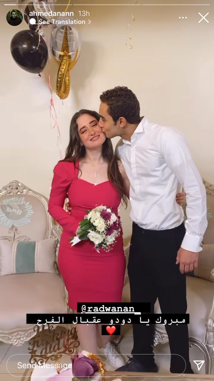 وشارك شقيقها الفنان الشاب أحمد خالد صورة من الخطوبة مع بعض الأقارب، والتي كانت في أجواء عائلية، ونشر صورة له مع شقيقته رضوى، وذلك عبر خاصية ستوري من حسابه الشخصي بموقع تبادل الصور والفيديوهات انستجرام، وكتب: مبروك يا دودو..عقبال الفرح.