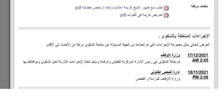 ومن المقرر أن تبحث الإدارة المركزية للتفتيش والرقابة، في مسألة منع الدكتور أحمد كريمة من الظهور إعلاميا، أو حتى منعه من الخطابة إذا لزم الأمر، وذلك حسب تصريحات المحامي والصيدلي هاني سامح، مقدم البلاغ ضد الشيخ أحمد كريمة، لموقع القاهرة 24.