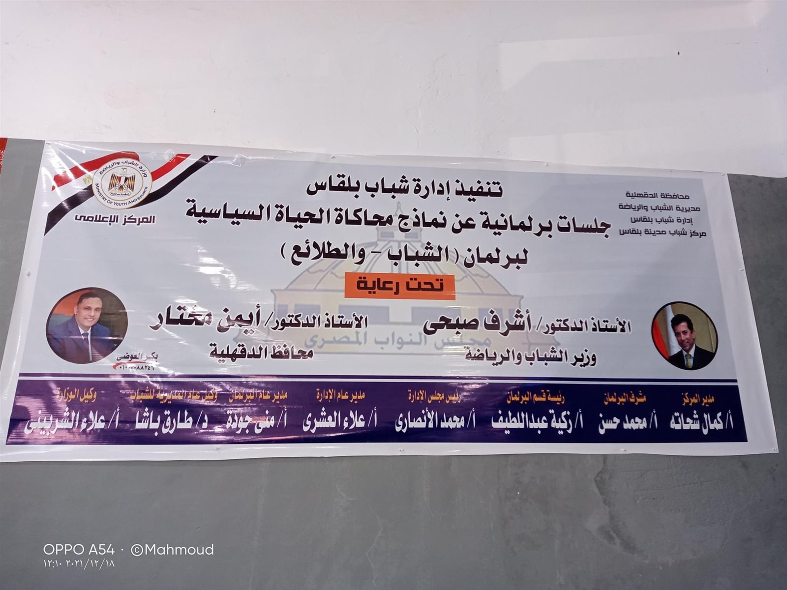 جدير بالذكر أنه تم انعقاد جلسة برلمانية اليوم بشكل كامل وتم خلالها طرح كافة المشكلات والمتطلبات في كافة المجالات على مستوى رئاسة مركز ومدينة بلقاس، من قبل الشباب المشاركين بالجلسة وتم الرد عليها من قبل جميع الجهاز التنفيذ.