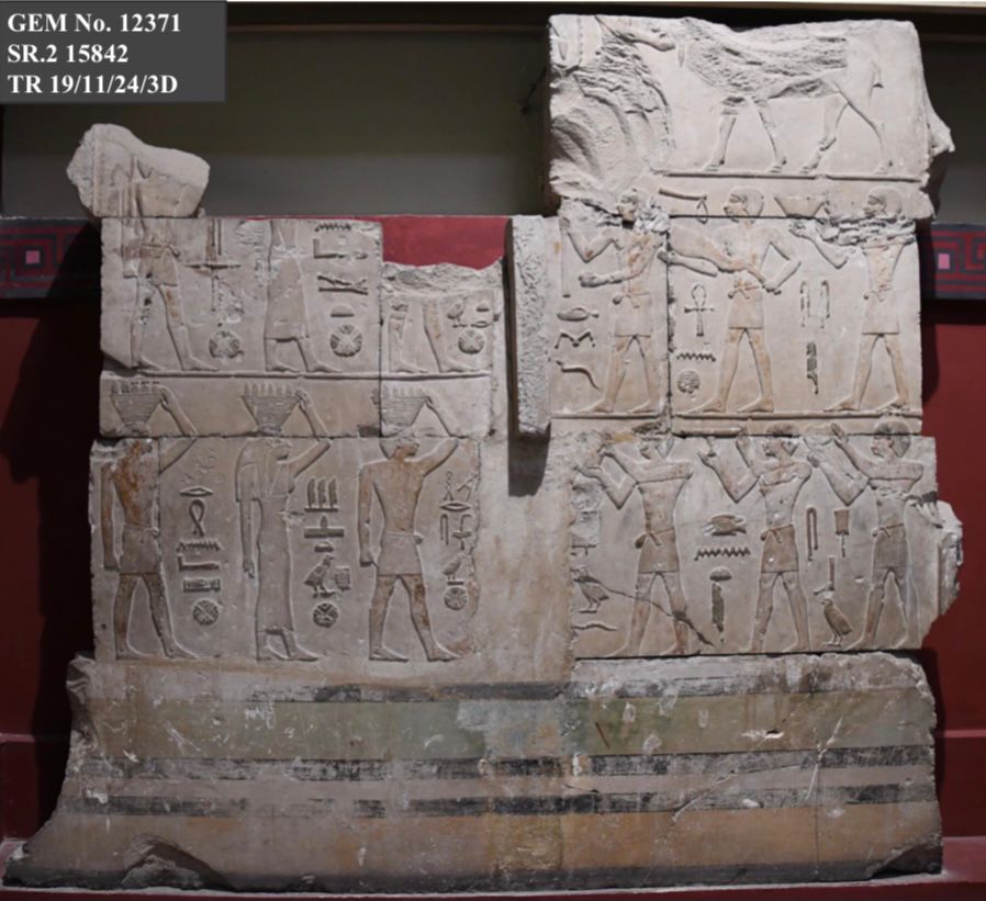 وأشار الدكتور عيسى زيدان المدير العام التنفيذي للترميم ونقل الآثار بالمتحف المصري الكبير، إلى أن فريق العمل من المتحف والمجلس الأعلى للآثار وثق أعمال الترميم الأولي وتغليف القطع الأثرية التي كانت مخزنة بمخزن آثار سقارة، وذلك قبل عملية نقلها والتي من بينها مجموعة من 269 قطعة حجرية، تمثل جدار عليه نصوص للأهرامات خاصة بالملكة عنخ أسن بيبي الثانية من عصر الدولة القديمة، مؤكدا أن فريق العمل سيقوم في القريب العاجل بترميم وتجميع تلك القطع داخل القاعة الرئيسية.