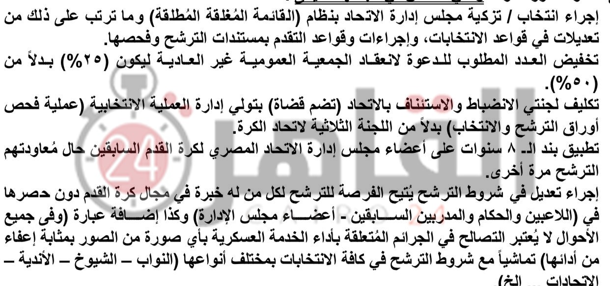 4- تطبيق بند الـ 8 سنوات على أعضاء مجلس إدارة الاتحاد المصري لكرة القدم حال معاودتهم الترشح مرة أخرى.