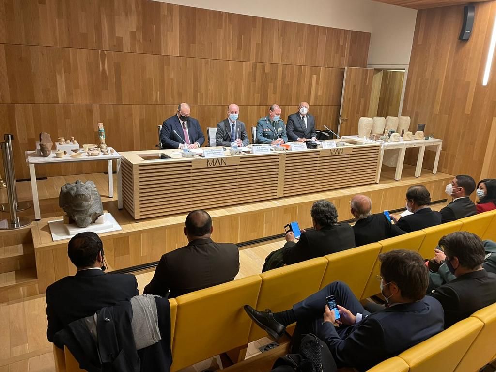 وفي إطار مباشرة النيابة العامة المصرية تحقيقاتها في الواقعة أرسلت إدارة التعاون الدولي بمكتب النائب العام طلبات الإنابة القضائية الدولية للسلطات الإسبانية للتحفظ على القطع الأثرية وإعادتها إلى جمهورية مصر العربية، ووالت متابعة الإجراءات القانونية المتخذة في إسبانيا حتى صدر حكم من القضاء الإسباني بتسليم القطع الأثرية المنهوبة للسلطات المصرية، وعليه كلف السيد المستشار النائب العام وفد النيابة العامة للانتقال لمعاينة واستلام القطع الأثرية المشار إليها.
