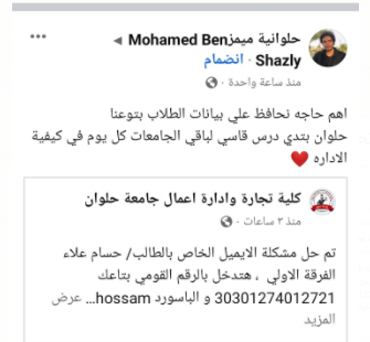 برجاء عدم إخبار أحد بالباسورد.. منشور لصفحة على فيس بوك لكلية تجارة حلوان يثير الجدل | صور