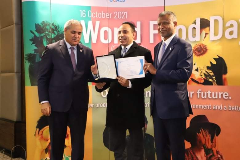وحصل الصحفي خالد وربي على شهادة تقدير ودرع المنظمة التابعة للأمم المتحدة؛ وسلمه له كل من الدكتور عبدالحكيم الواعر، المدير العام المساعد لمنظمة الفاو، والممثل الإقليمي للمنظمة لمنطقة الشرق الأدنى وشمال إفريقيا، والدكتور نصر الدين حاج، الأمين ممثل منظمة الفاو في مصر.