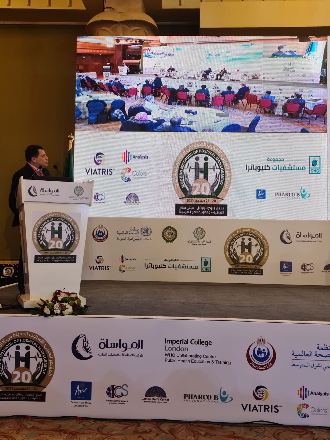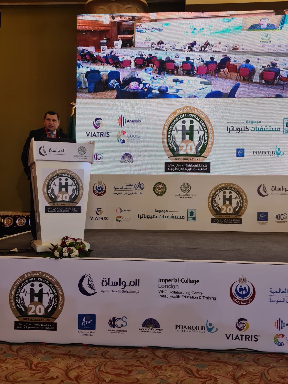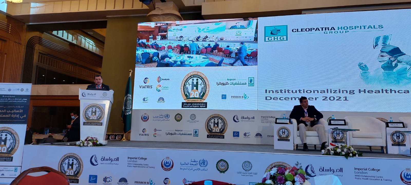 وشارك الدكتور أحمد عز الدين الرئيس التنفيذي والعضو المنتدب لمجموعة مستشفيات كليوباترا في الجلسة الخامسة في فاعليات المؤتمر العربي الـ 20 للأساليب الحديثة في إدارة المستشفيات، والتي عرض خلاها تجربة نجاح مجموعة مستشفيات كليوباترا كأحد أهم المستشفيات الرائدة في تقديم الخدمة الطبية الرائدة في مصر المنطقة العربية.
