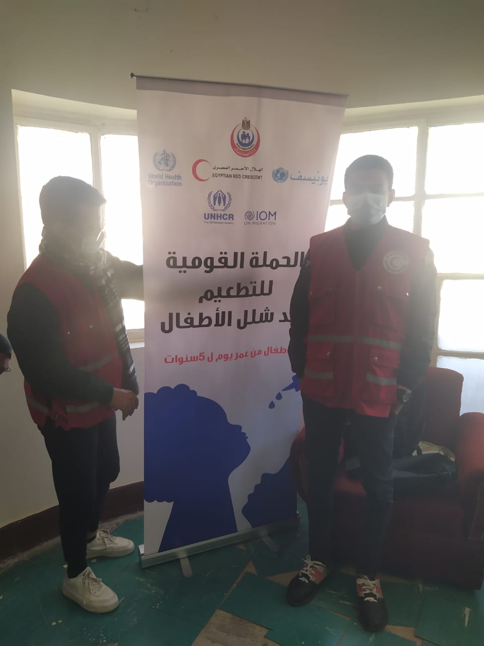 وتواجد متطوعو الهلال الأحمر المصري مع فرق وزارة الصحة والسكان، في جميع محافظات الجمهورية في الميادين وأماكن ونقاط التمركز لتقديم كافة الخدمات والمساعدة في رفع الوعي للتطعيم ضد شلل الأطفال للمصريين، وضيوف مصر من الجنسيات المختلفة وباللغات المحلية.