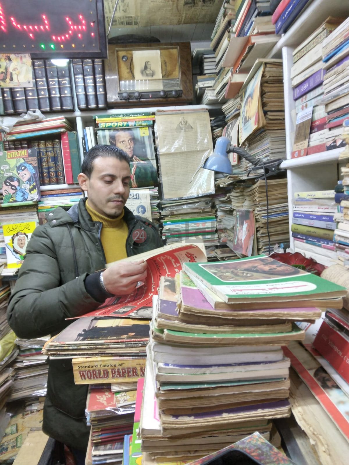 وعن معاصرة الجيل الحالي، قال السيد: عندي حاجات تانية عليها الطلب من الجيل الجديد، زي الروايات والكتب المترجمة، ولكن ده ميمنعش إن في شباب بتشتري مني وبتيجي مخصوص عشان الأعداد القديمة من المجلات والجرائد، وبتبقى حسب الاهتمامات أكيد.