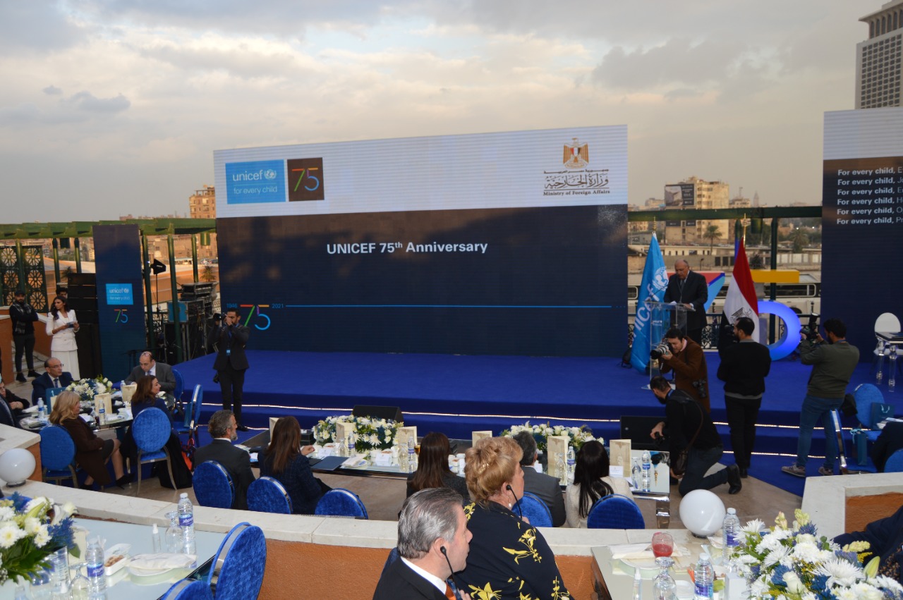 افتتح سامح شكري وزير الخارجية، احتفالية مرور 75 عامًا على تأسيس صندوق الأمم المتحدة للطفولة UNICEF.