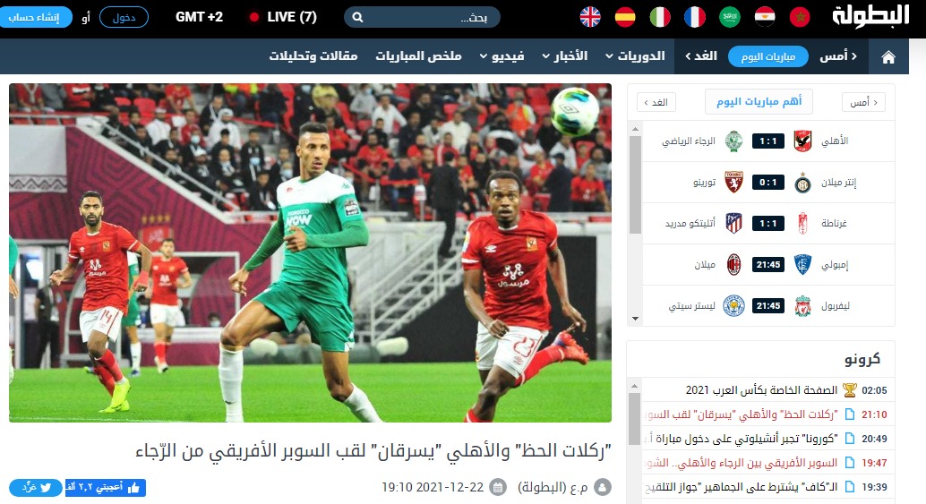 رصدت العمق الرياضي فوز الأهلي بالسوبر على حساب الرجاء، بالعنوان "الأهلي يتوج بالسوبر الإفريقي للمرة الثامنة في تاريخه على حساب الرجاء"