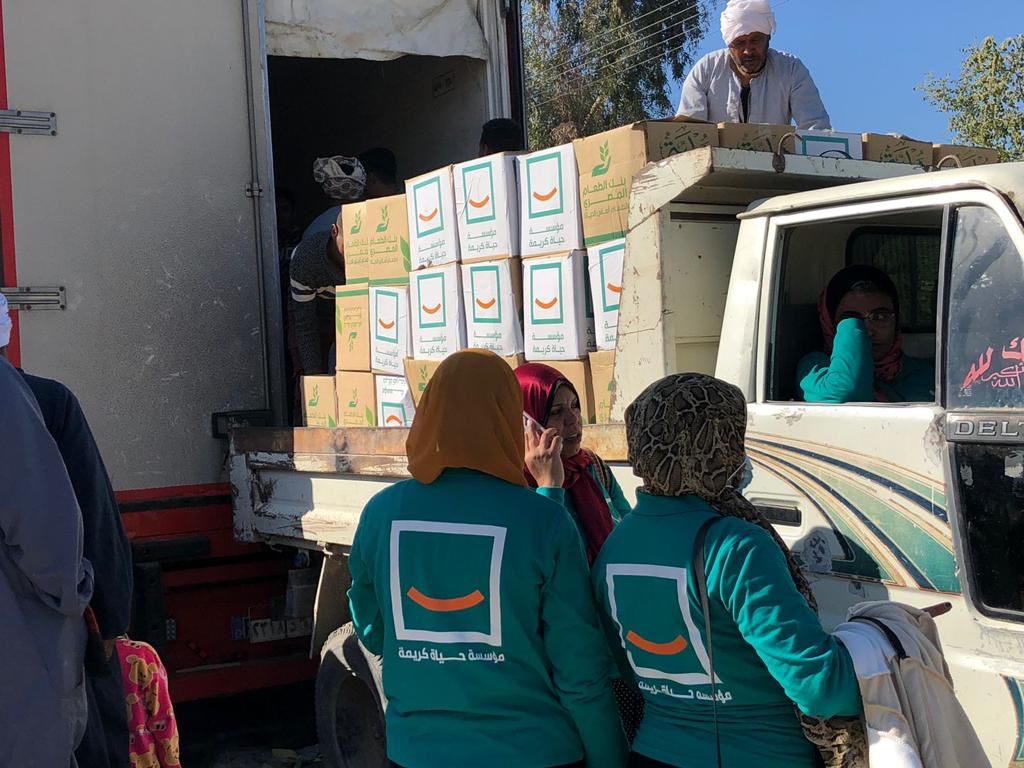 أعلنت مؤسسة حياة كريمة إطلاق عدد من القوافل المُحملة بالمواد الغذائية الأساسية على المواطنين في محافظات الصعيد، وذلك بالتعاون مع بنك الطعام المصري لتوزيع 7 آلاف كرتونة مواد غذائية أساسية على أهالي محافظتي قنا وأسوان.