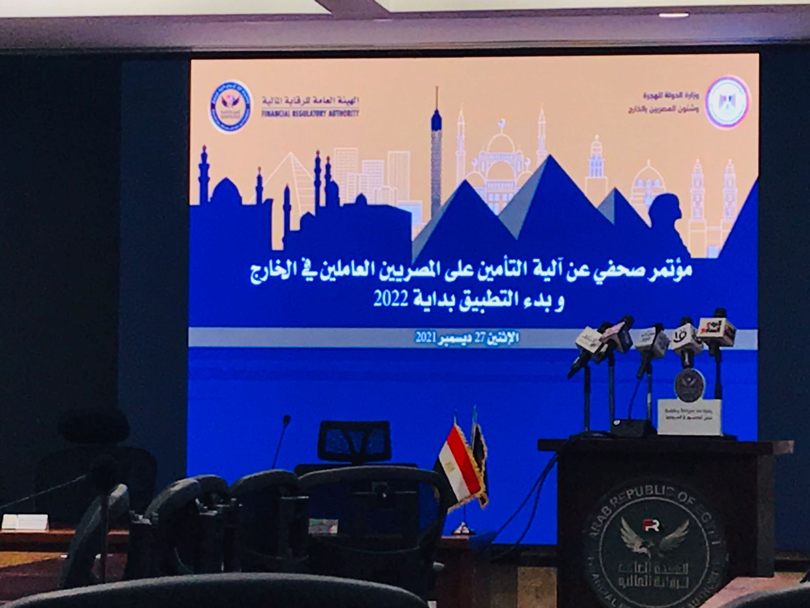 انطلاق المؤتمر الصحفي لإعلان بدء تطبيق أول وثيقة تأمين على المصريين بالخارج