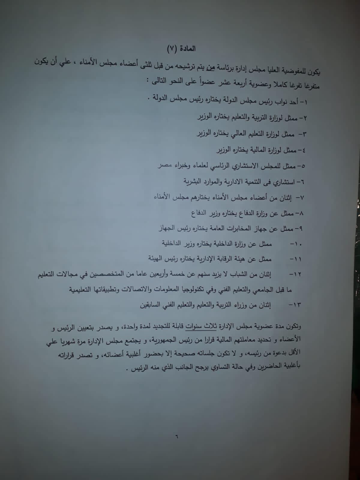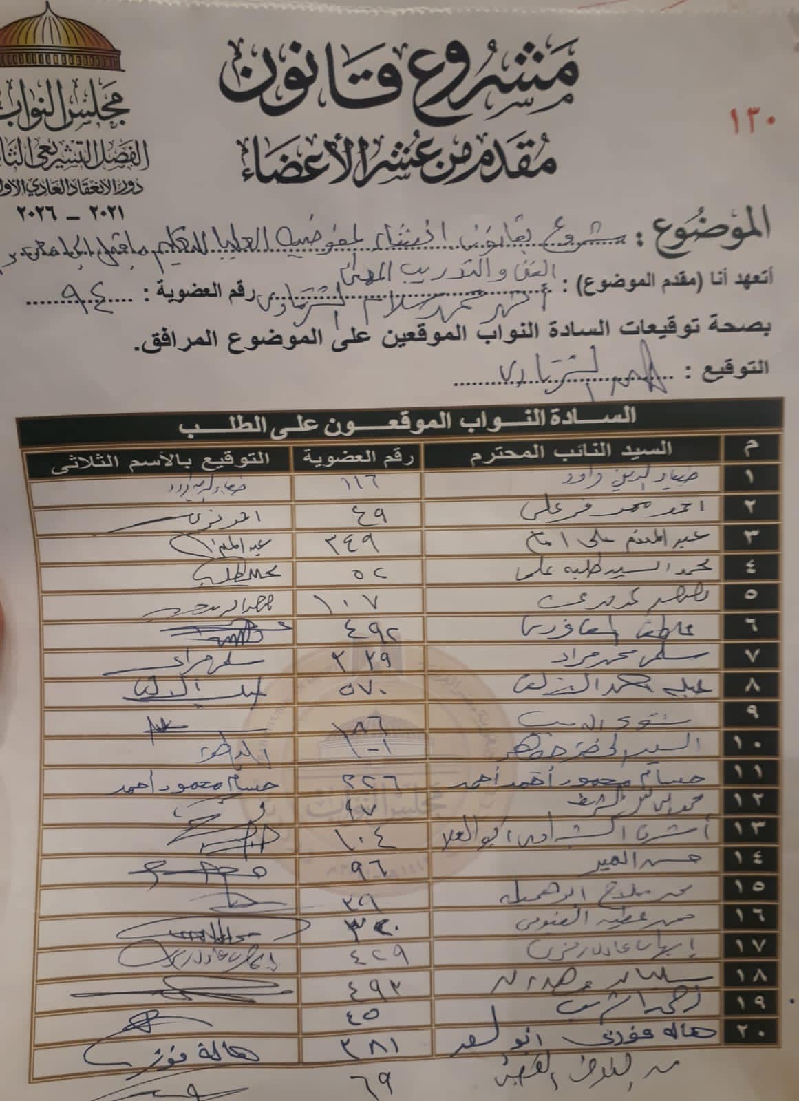 انتظم مشروع قانون إنشاء المفوضية العليا للتعليم ما قبل الجامعي والتعليم الفني والتدريب المهني، المقدم من النائب أحمد الشرقاوي و60 نائبًا، أكثر من عُشر عدد أعضاء المجلس، في 15 مادة مع مادة النشر.