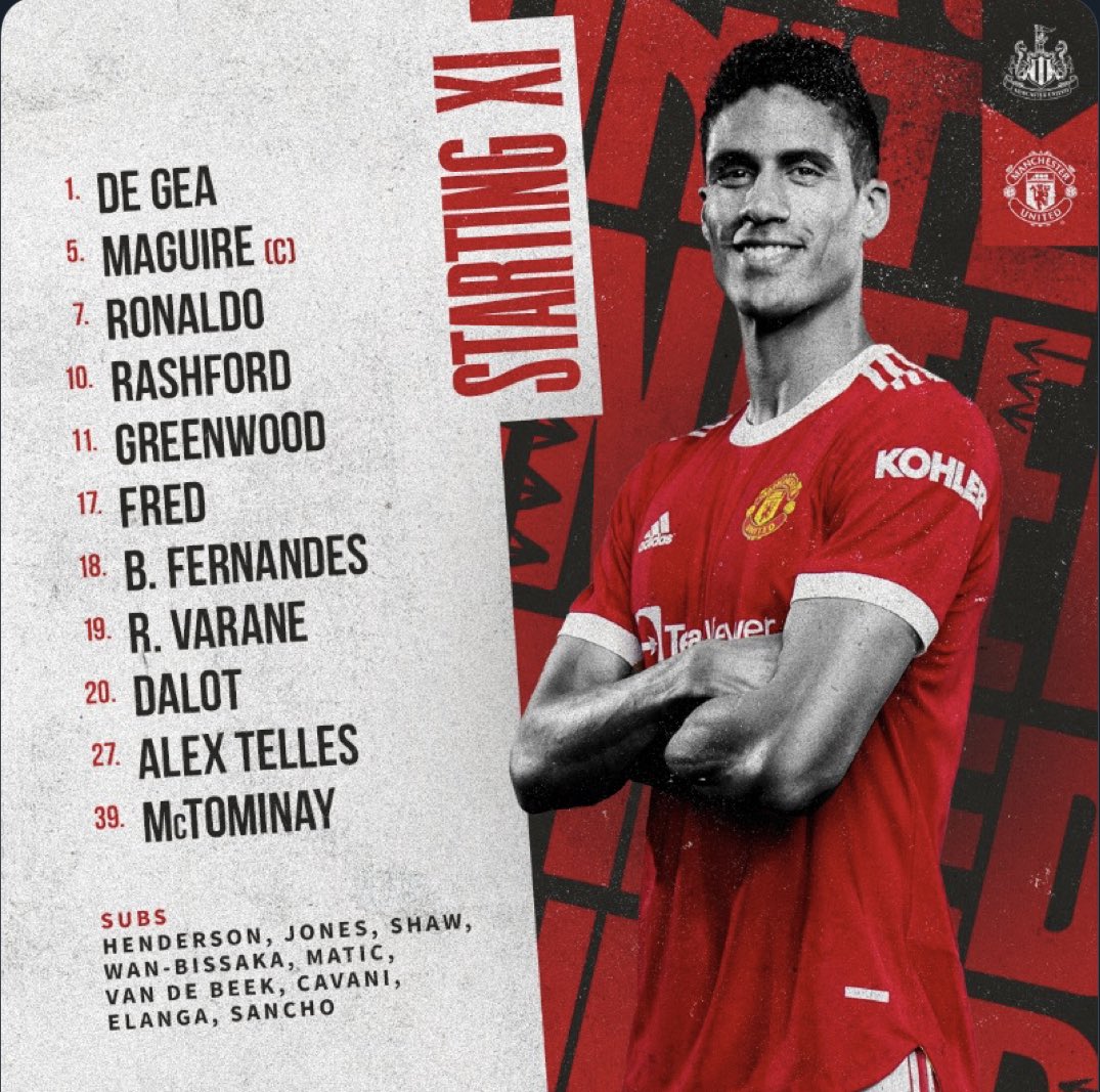 وجاء تشكيل مانشستر يونايتد لـ مواجهة نيوكاسل في الدوري الإنجليزي كالتالي: -
