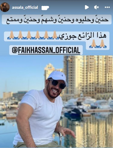 وشاركت أصالة جمهورها بعدة صور لها مع زوجها فائق حسن، وذلك عبر ستوري لها على حسابها الشخصي بموقع تبادل الصور والفيديوهات القصيرة انستجرام، وعلقت عليها قائلة: حنين وحليوة، وشهم وحنين وممتع.. هذا الرائع زوجي.
