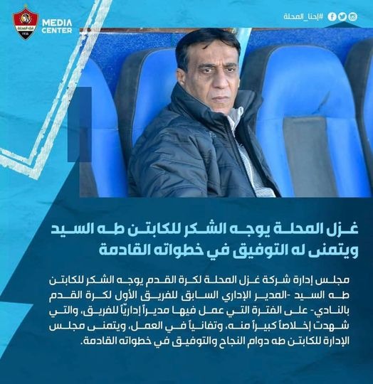 قرر مجلس إدارة شركة غزل المحلة لكرة القدم، برئاسة المهندس علي العباسي، إسناد منصب المدير الإداري للفريق الأول لكرة القدم محمد الجميل، بعد أن تم فسخ العقد بالتراضي بين الشركة وطه السيد المدير الإداري (السابق) للفريق الأول لكرة القدم.