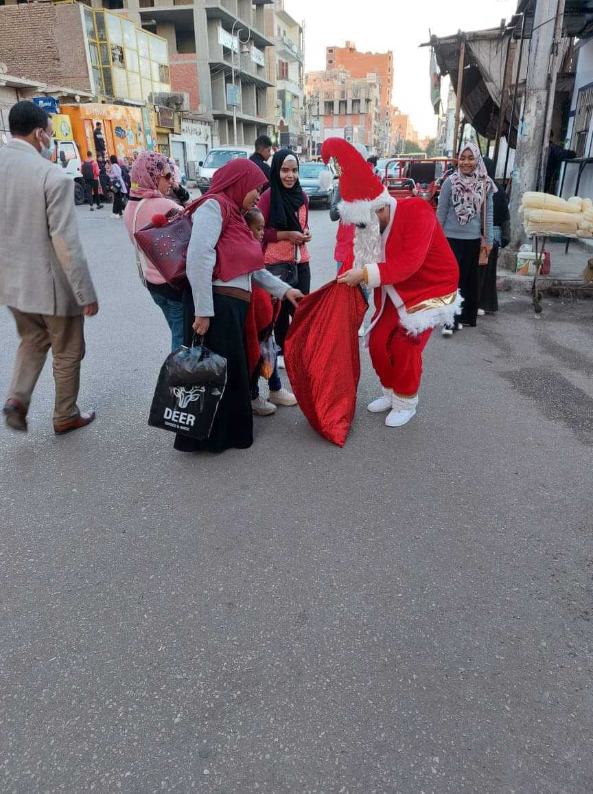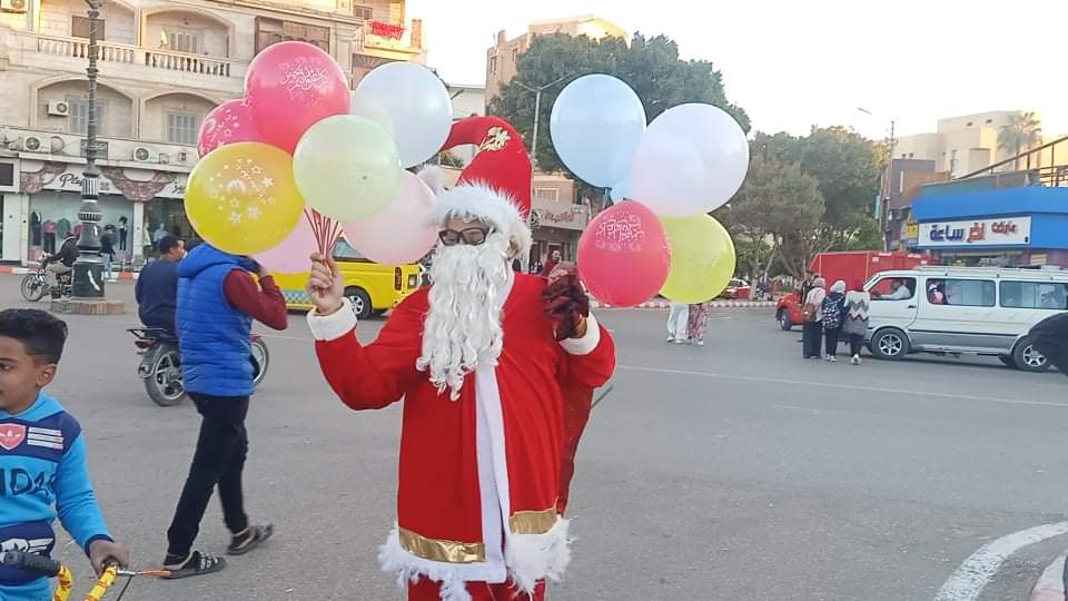 بابا نويل يجوب شوارع قنا لتوزيع الهدايا على الأطفال