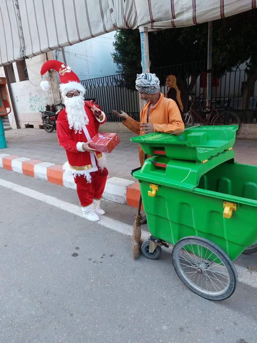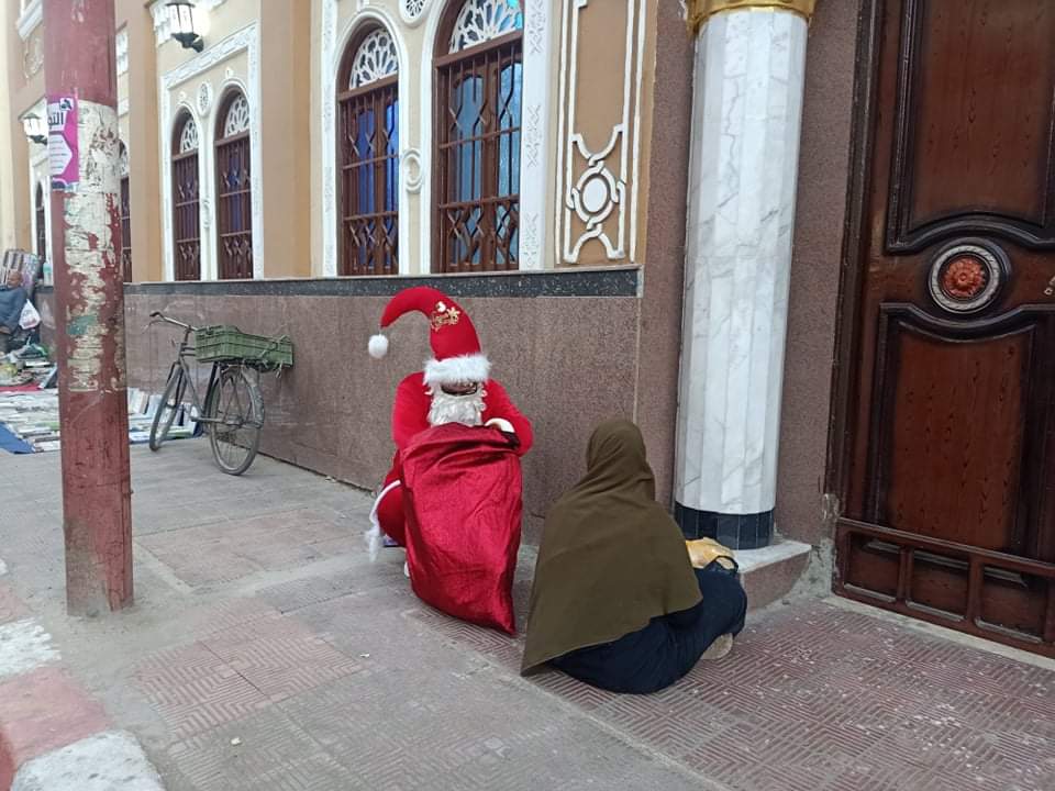 كعادته كل عام، ارتدى بدلة حمراء ووضع على ذقنه اللحية البيضاء التي يشتهر بها بابا نويل وانطلق في شوارع مدينة قنا، يرسم البهجة على وجوه المارة، خاصة جامعي القمامة والعمال البسطاء والأطفال، مانحا إياهم بعضا من هدايا عيد الميلاد التي يحملها في جعبته.