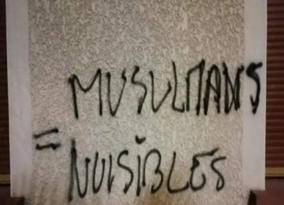 وأضاف الأزهر أنه تم رصد عبارات عنصرية ضد المسلمين، وبعض الجاليات الأخرى على الجدار بأحد شوارع مدينة شاتو-غونتييه، بمنطقة باي دو لا لوار الفرنسية.