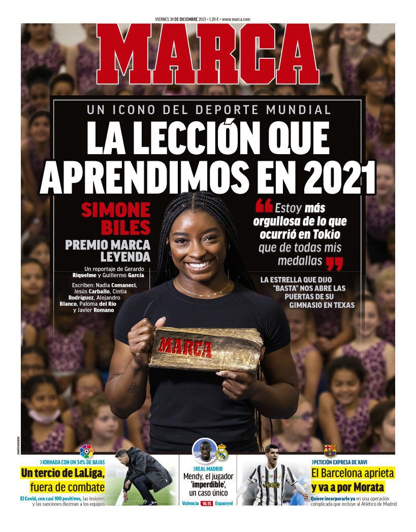 عنونت الصحيفة في غلافها بـ خيار موراتا، كما تصدر العنوان عقاب ديمبلي غلاف الصحيفة، حيث أفادت بأن برشلونة قرر يتخلى عن الفرنسي ويفكر في معاقبته في المدرجات أو بيعه في نفس الشهر من شهر يناير.