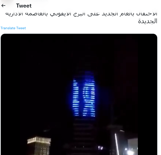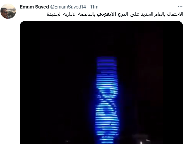 بينما نشر عماد السيد فيديو للبرج وهو مضاء، معلقًا عليه: الاحتفال بالعام الجديد على البرج الأيقوني بالعاصمة الإدارية الجديدة.