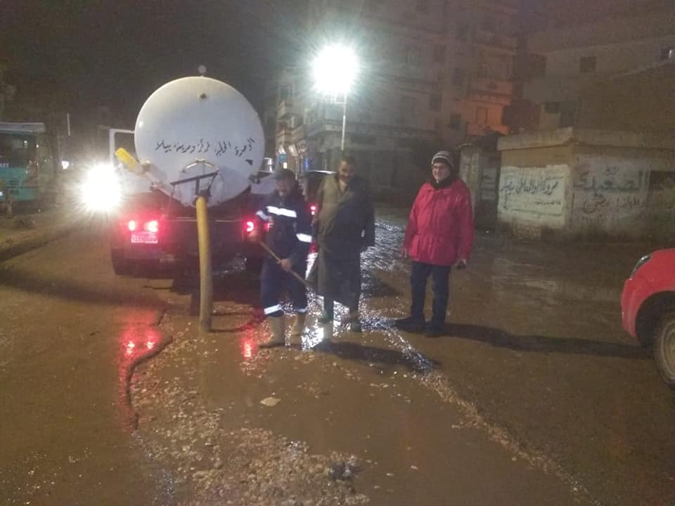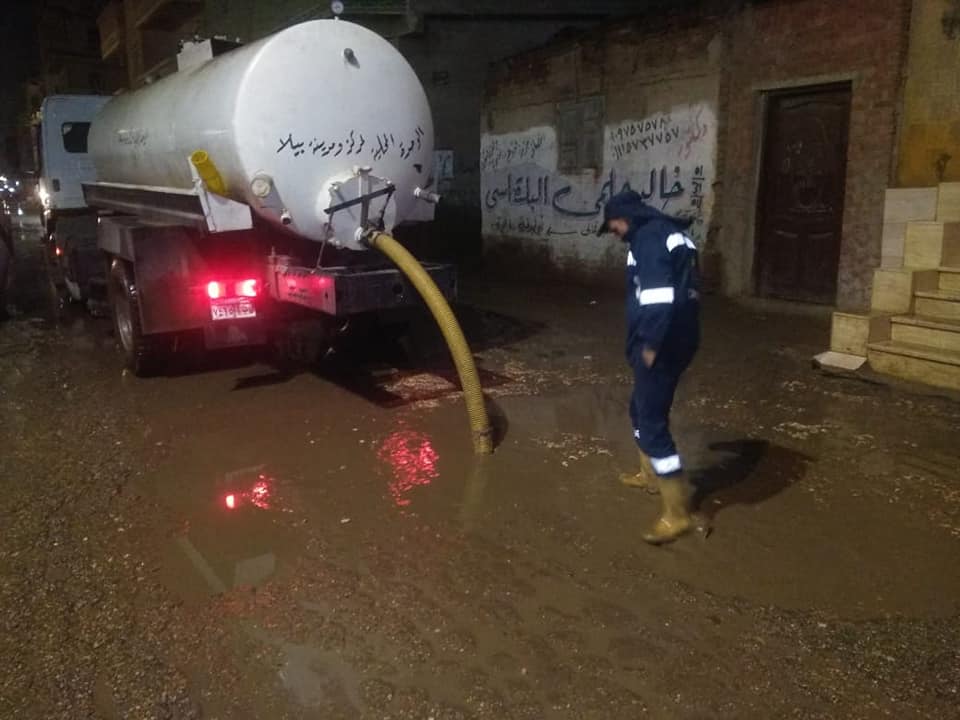 استمرار أعمال رفع مياه الأمطار من الشوارع ببيلا بكفر الشيخ|صور
