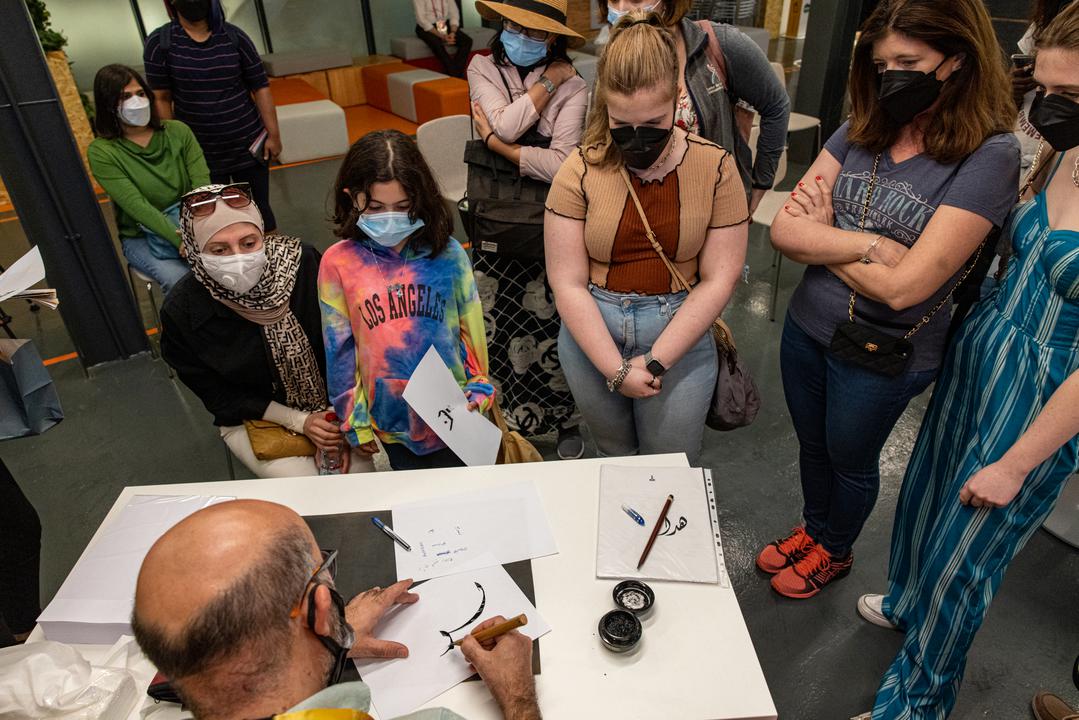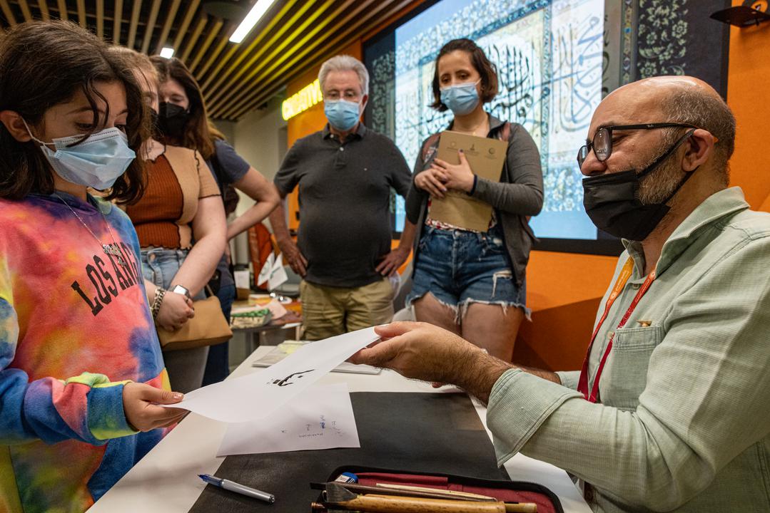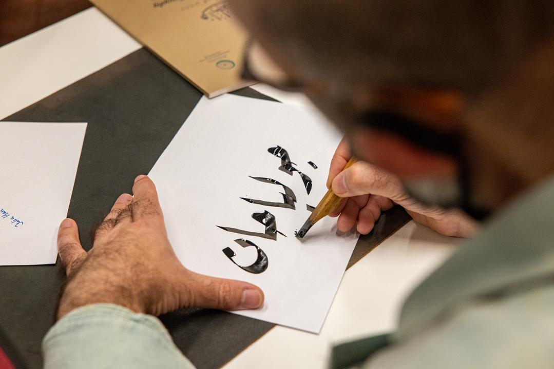 الخط العربي يجذب زوار إكسبو دبي للمشاركة وتدوين البطاقات| صور