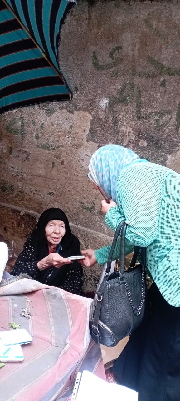 تضامن الجيزة تقدم مساعدات مادية وبطاطين لسيدة تعمل بائعة بشوارع الجيزة | صور