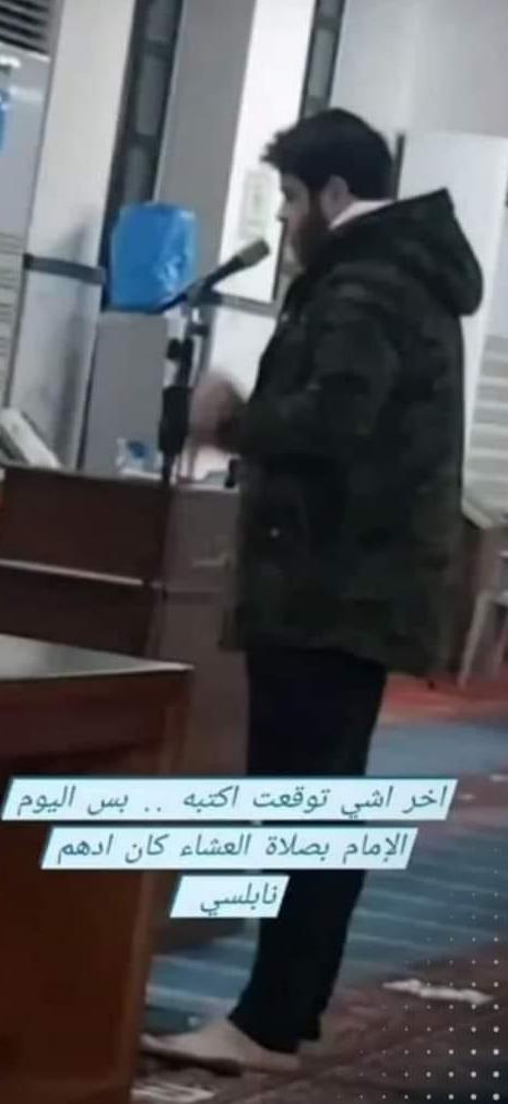 تداول رواد مواقع التواصل الاجتماعي صورة جديدة للفنان الأردني الشاب أدهم نابلسي وهو يصلى إمامًا للمصلين لصلاة العشاء في أحد المساجد.