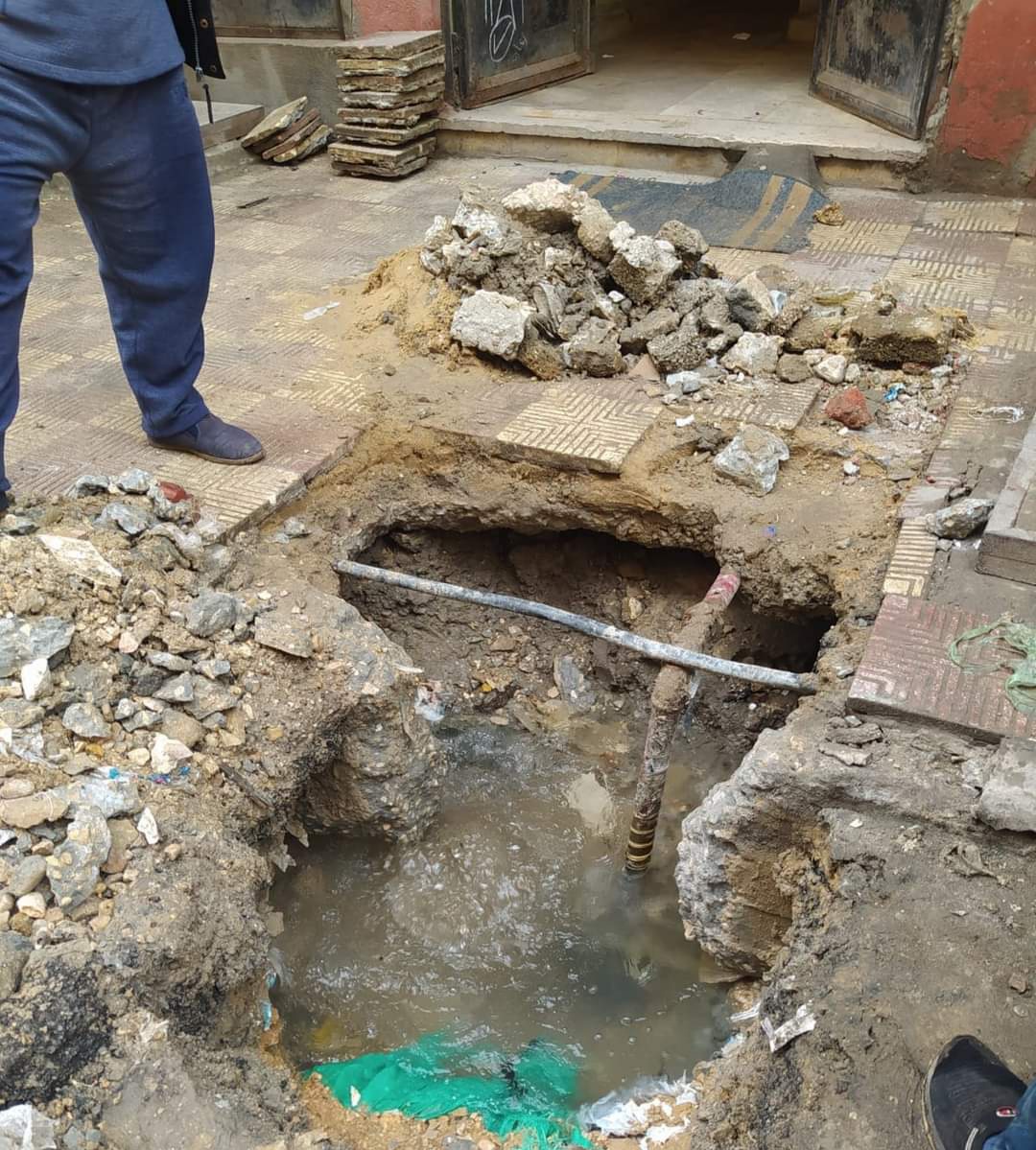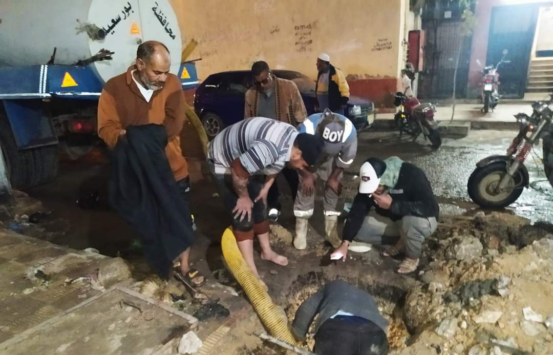 إصلاح كسر خط المياه العمومي بمنطقة استكمال زمزم ببورسعيد