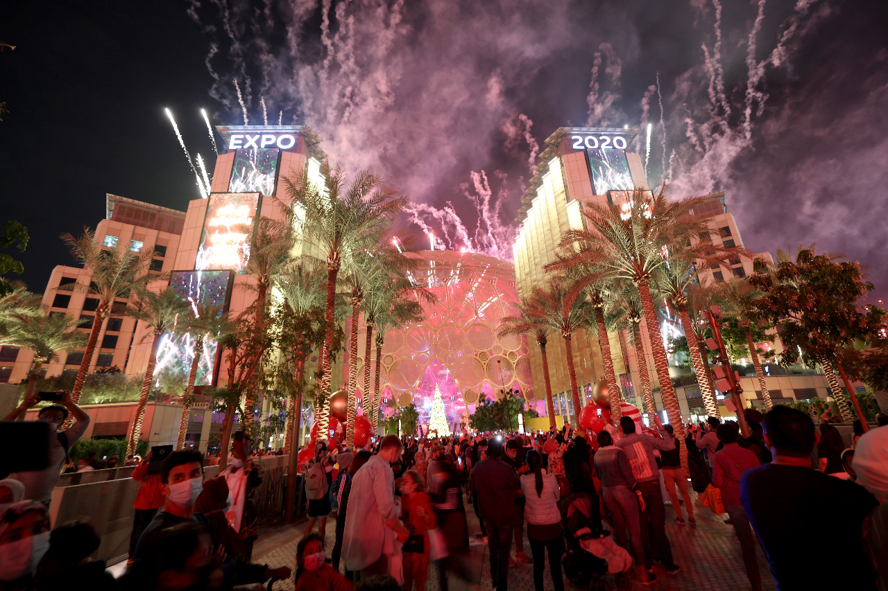 وظهر العد التنازلي من عليها ايضًا مع الألعاب النارية، كذلك تألقت جزيرة النخلة في دبي بالاحتفالات وإطلاق الالعاب النارية، ونظمت القرية العالمية في دبي تنظم الكثير من العروض والألعاب النارية في أوقات مختلفة ومن 8 مواقع حول العالم، واحتفلت كافة أجنحة البلدان في اكسبو دبي من خلال عروض موسيقية في جناح نيوزيلندا وعروض الفنية وثقافية في جناح الصين، في حين بدأ جناح فيتنام الاحتفالات بدخول السنة الجديدة بتوقيت العاصمة هانوي، وحرصت السلطات بالاجراءات الاحترازية وفرض الغرامات على عدم ارتداء الكمامة في أماكن الاحتفالات،