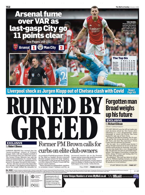 عنونت صحيفة ديلي ميل في غلافها، اليوم، بـ صدمة في ليفربول، وذلك بعد أن أشارت إلى غياب كلوب عن مباراة الليلة، بسبب الإصابة بفيروس كورونا؛ التي تعرض لها مؤخرًا، وتحرم الريدز من الاستفادة من تواجده في ملعب مباراة الغد.