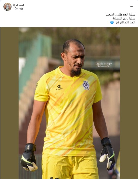 وجه علي فرج حارس الفريق الأول لكرة القدم بنادي الترسانة، رسالة عبر حسابة الشخصي على موقع التواصل الاجتماعي فيسبوك، إلى طارق السيد المدير الفني للفريق الأول، والنائب طارق السعيد حسانين رئيس مجلس إدارة المشرف على الفريق الأول بنادي الشواكيش.