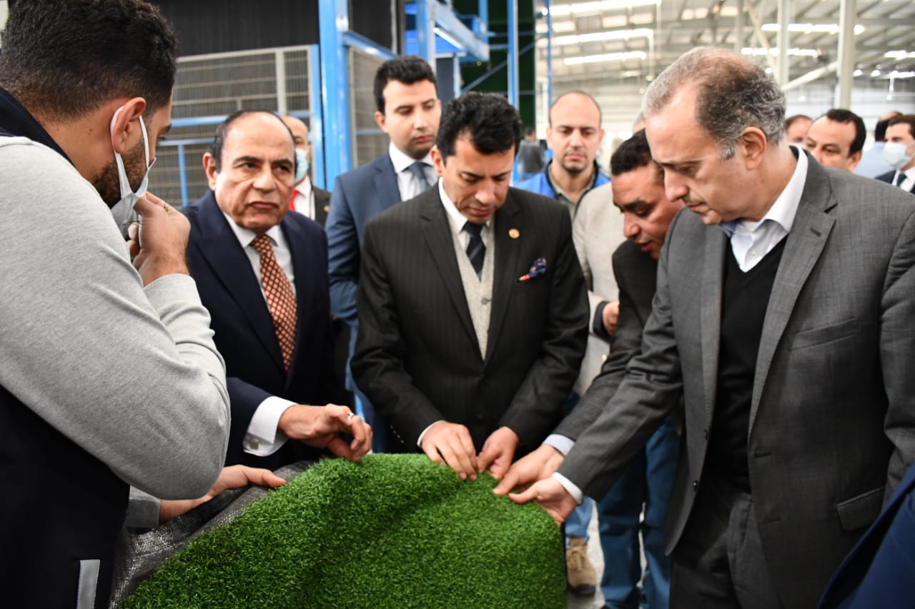 وزير الرياضة يتفقد مصنع النجيل الصناعي بعد تطويره │ صور