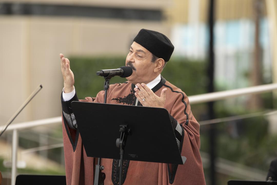 وبدأ الحفل برفع علمي الإمارات العربية المتحدة والجمهورية التونسية، مع عزف النشيدين الوطنيين للبلدين، وتحدثت السيدة الرابحي بن حمزة، حيث وجهت الشكر والامتنان لدولة الإمارات، كما أشادت بالمعرض العالمي، ثم قدم لطفي بوشناق فقرته الغنائية في ساحة الوصل، وسط حضور عدد من زوار إكسبو 2020 دبي.