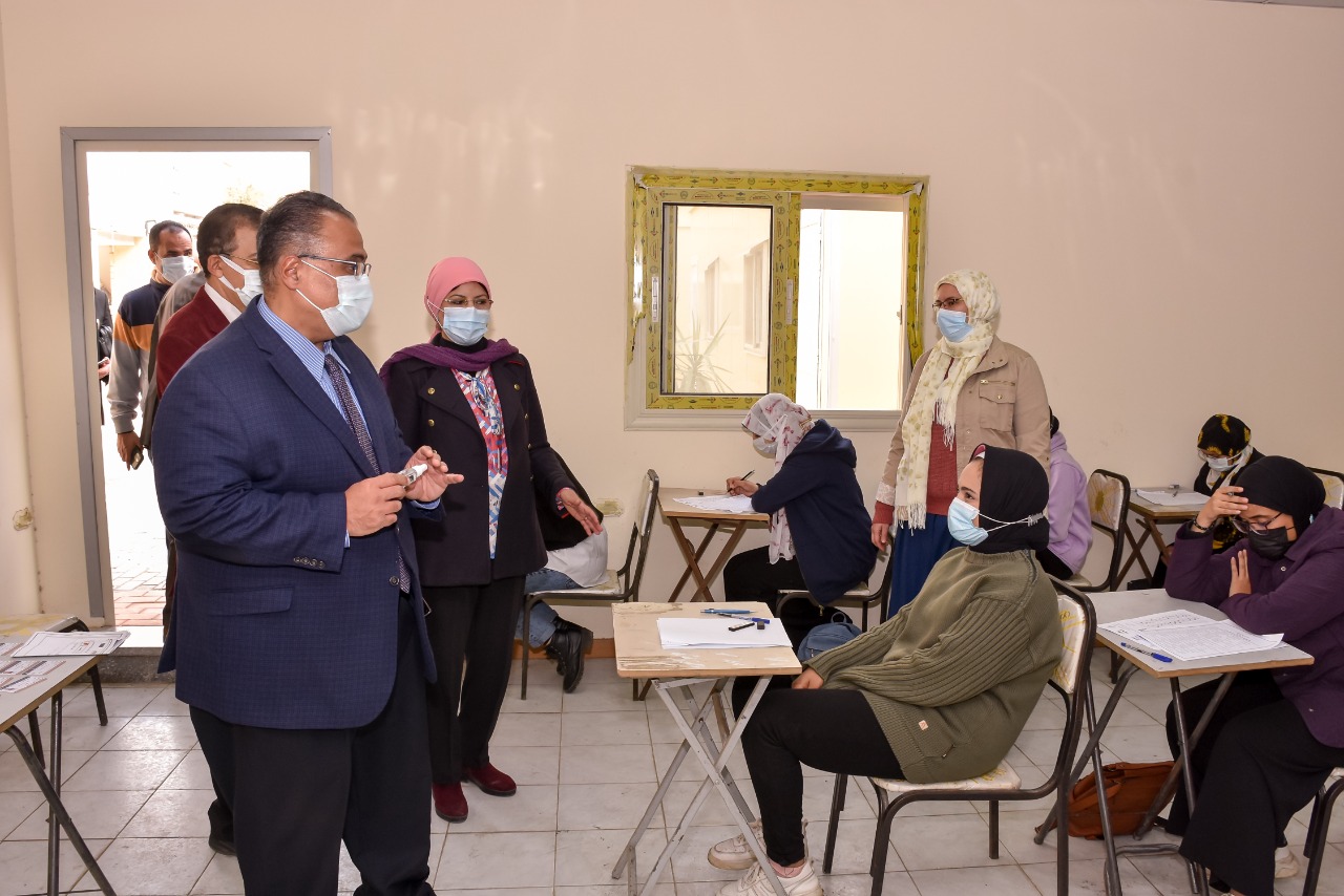 كما أوضح أنه تم تقسيم الفرق حيث تؤدي الاختبار الفرقة الأولى والثالثة بالتبادل اليومي مع الفرقة الثانية والرابعة ويتم إجراء الامتحانات لكل فرقة في فترة منفصلة، لتحقيق أقصى قدر من التباعد داخل اللجان بين الطالبات، وعدم وجود تزاحم خلال دخول وخروج الطلاب.