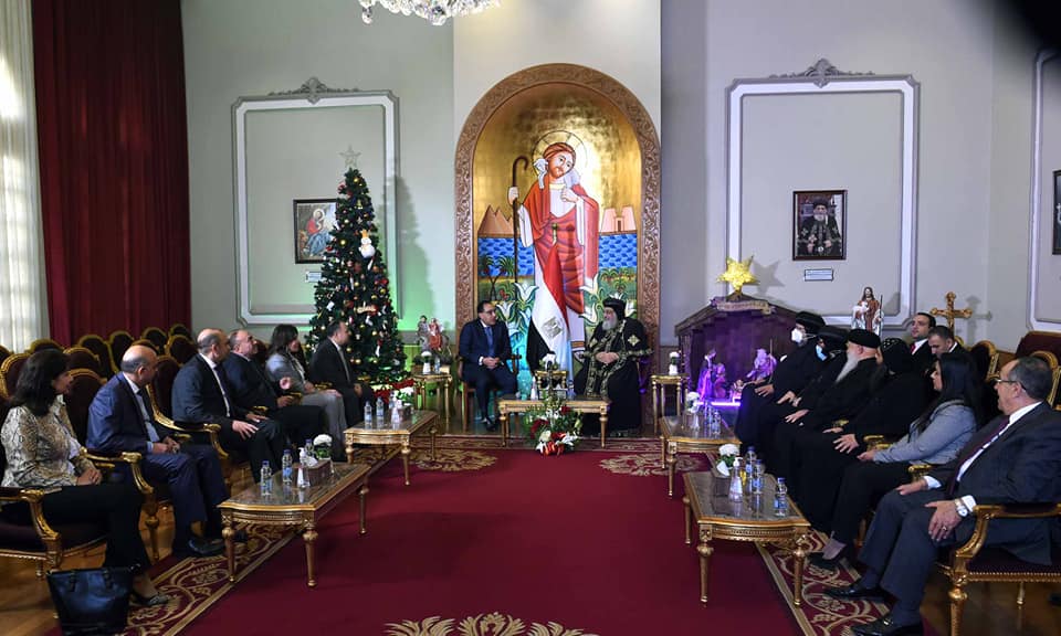 بينما أوفد الرئيس عبد الفتاح السيسي، رئيس الجمهورية، أحمد الأنصاري، أمين رئاسة الجمهورية، إلى طائفة الأقباط الإنجيلية؛ للتهنئة وحضور الاحتفال بعيد الميلاد المجيد.