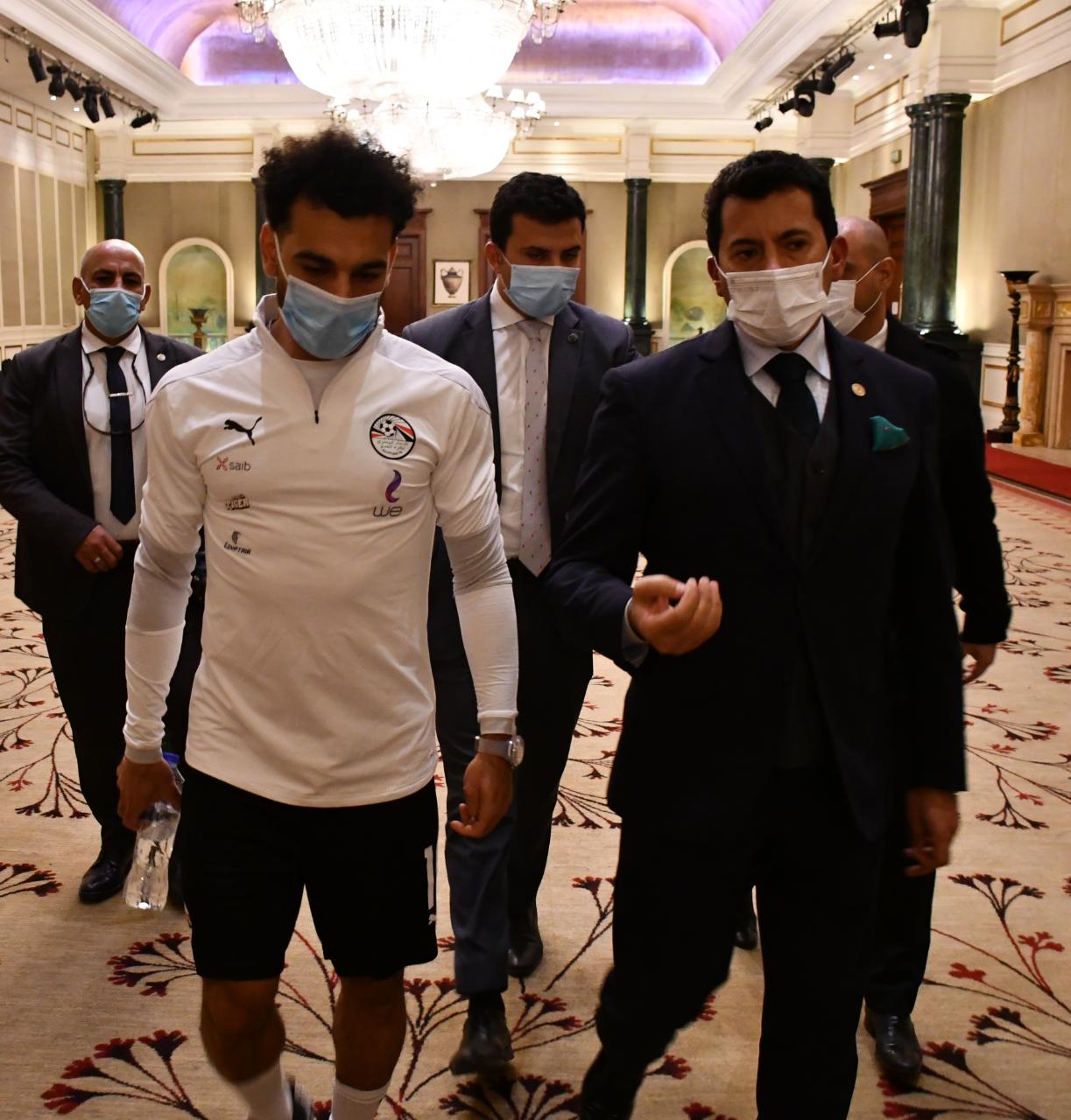 وقال محمد صلاح خلال زيارة وزير الرياضة للمنتخب قبل السفر إلى الكاميرون: كلنا على قلب رجل واحد، والفوز بكأس إفريقيا، ولدينا روح معنوية مرتفعة وهدفنا اسعاد الشعب المصري.