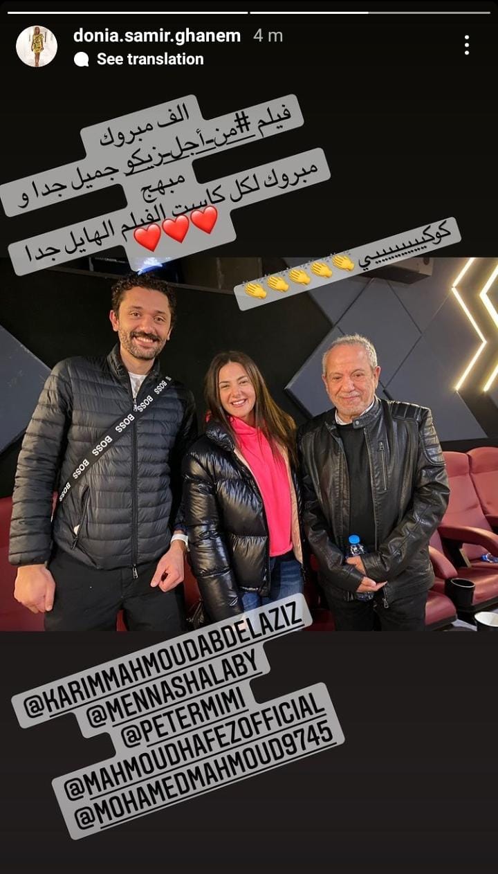 دنيا سمير غانم تهنئ أبطال فيلم من أجل زيكو