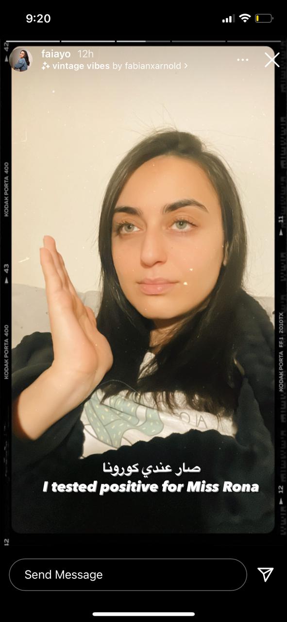 ونشرت فايا يونان صورة لها، عبر ستوري بحسابها الشخصي بموقع تبادل الصور والفيديوهات القصيرة انستجرام، وعلقت عليها قائلة: صار عندي كورونا.