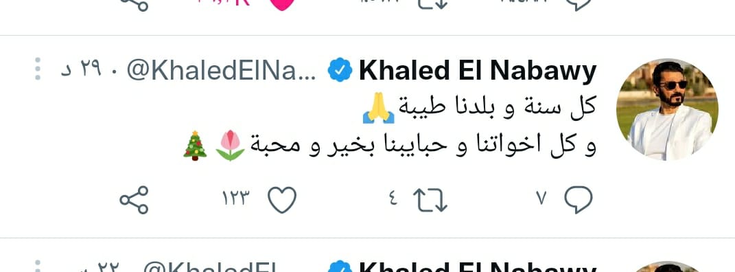 وكتب خالد النبوي تغريدة، عبر حسابه الشخصي بموقع التدوينات القصيرة تويتر، قال فيها: كل سنة وبلدنا طيبة، وكل إخواتنا وحبايبنا بخير ومحبة.