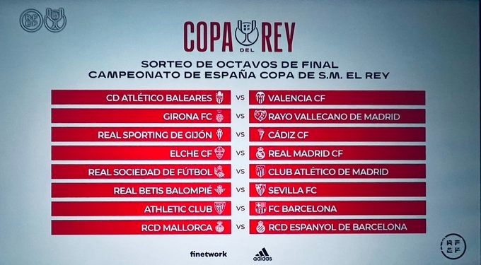 وجاءت مواجهات دور الــ16 من كأس ملك إسبانيا كالتالي:
