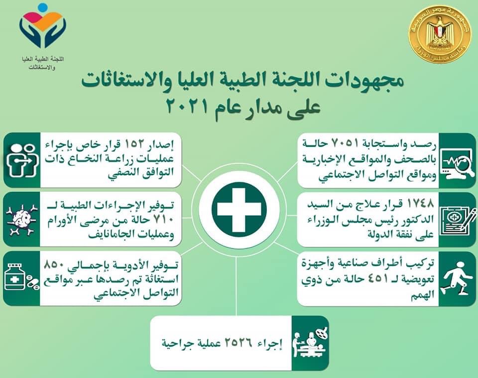 جهود ضخمة لـ اللجنة الطبية العليا ولجنة الاستغاثات بمجلس الوزراء خلال 2021