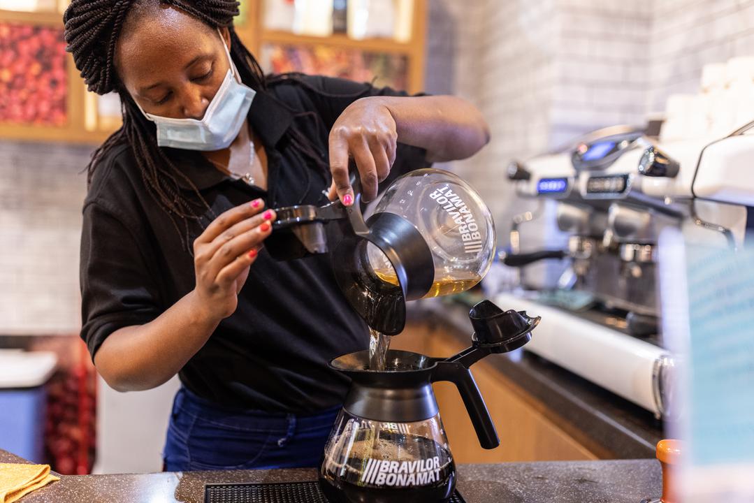 ويقدم مقهى ألانغا في جناح الجابون كل يوم خميس فرصة للزوار لأخذ عينات من القهوة، وللحصول على حزمة من أفضل كبسولات القهوة التي ينتجها مقهى ألانغا، وإذا كنت بحاجة إلى مزيد من الإقناع، فقد حصلت ألانغا – حبوب البن الوحيدة المزروعة في الغابات المطيرة في الجابون في مقاطعة أوت أوجوي- على الميدالية الذهبية لجائزة الذواقة عن فئة مستديرة ومتوازنة في النسخة الرابعة من بطولة تحميص القهوة الدولية.