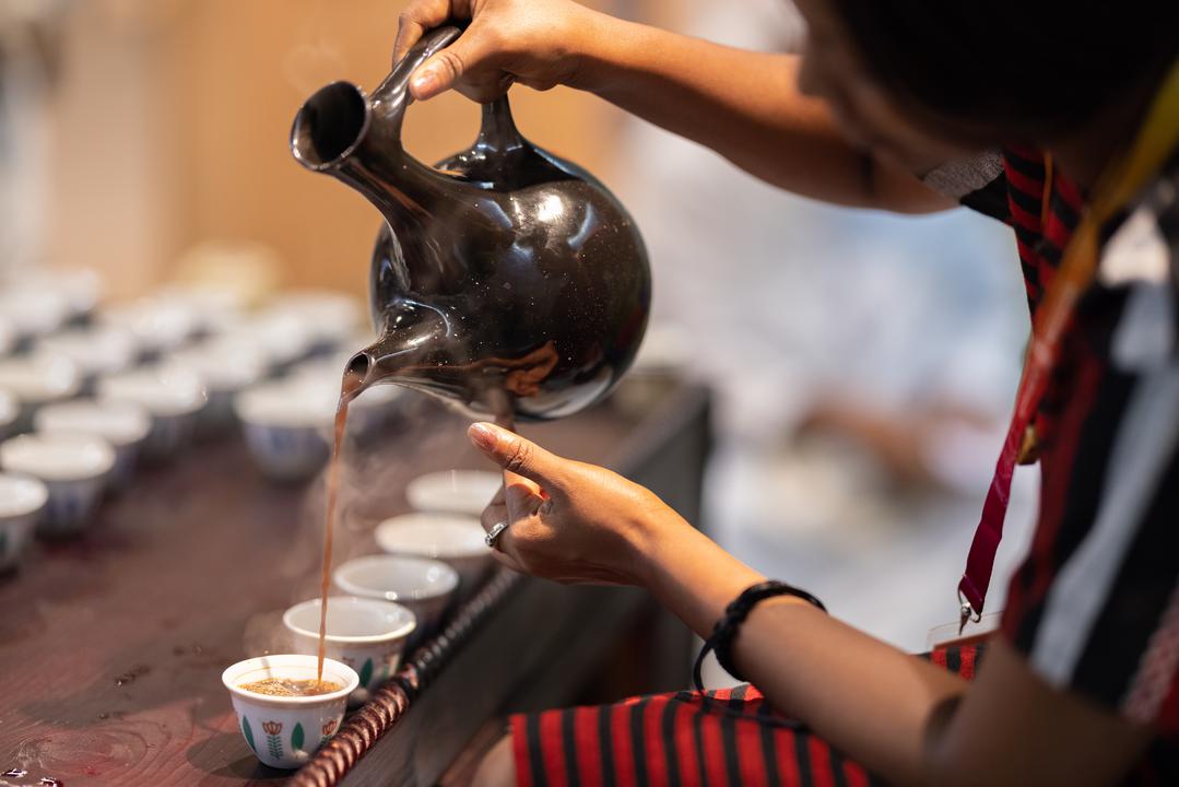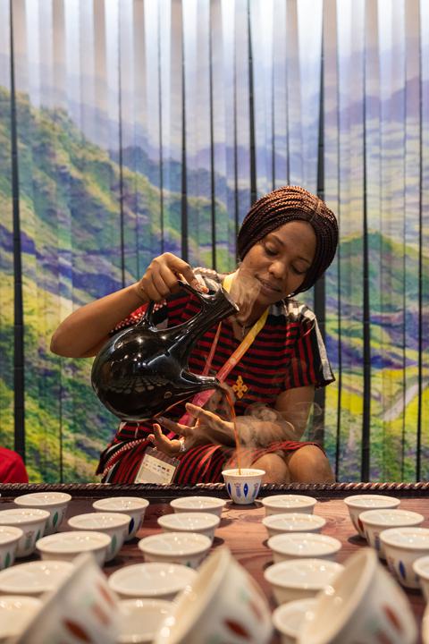 وفي الجناح الإثيوبي يستطيع الزوار مشاهدة مراسم إعداد القهوة، والتي تنطوي على الطقوس المُتمثلة بعملية تجهيز حبوب البن الخام غير المغسولة انتهاء إلى صبها في فناجين القهوة، أهم مناسبة اجتماعية في العديد من القرى في إثيوبيا، فعندما تتلقى دعوة لحضور مراسم إعداد القهوة، فإنْ دَلَّ هذا الأمرُ علَى شَيء فإنما يَدُلُّ على الاحترام والصداقة، ويأخذ جناح إثيوبيا زواره في رحلة تمكنهم من الاطلاع على عملية زراعة القهوة لدى السكان الأصليين ابتداء من البذور وصولا إلى الكوب، وذلك من خلال عرض مُقدم على شاشة تفاعلية، يصطحب الزوار في نهاية الرحلة إلى منطقة أصلنا، وهي حديقة مزروعة بزنابق الكالا - الزهرة الوطنية الإثيوبية – حيث يتمكنون في نهاية هذه الرحلة الملهمة من الاستمتاع بمراسم تحضير وتقديم القهوة التقليدية.