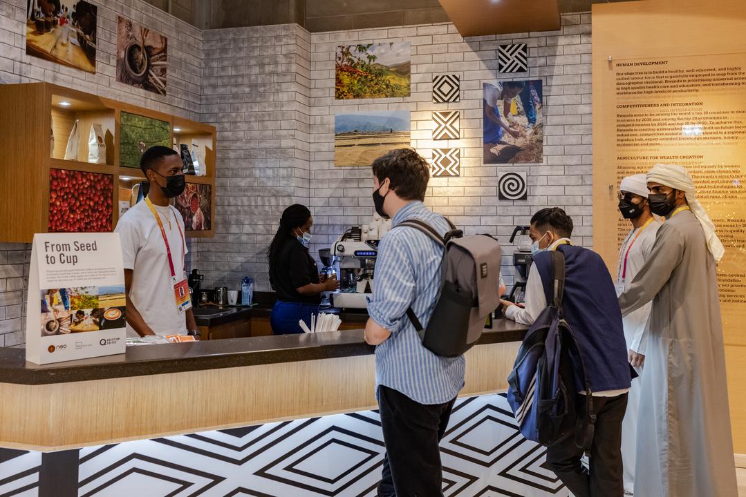 كما يعرف البن الرواندي بأنه من أجود أنواع البن الأرابيكا، حيث يلعب المناخ الملائم التي تتمتع به رواندا، إلى جانب المعالجة ذات الجودة العالية لحبوب البن، دورا مهما في جعل بعض أصناف حبوب البُن تزخر بنكهة غنية ومتنوعة، وفي ختام زيارتك لجناح رواندا، الذي يأخذ الزوار في رحلة عبر ربوعه المُتمثلة بمساحة مستوحاة من قصر الملك، فضلا على أنه يتيح لزواره خوض غمار الواقع الافتراضي الذي يأخذهم في رحلة شيقة برفقة غوريلا، ننصحك بالتوجه صوب مقهى رواندا لتذوق القهوة الأصليّة المزروعة في البلاد.