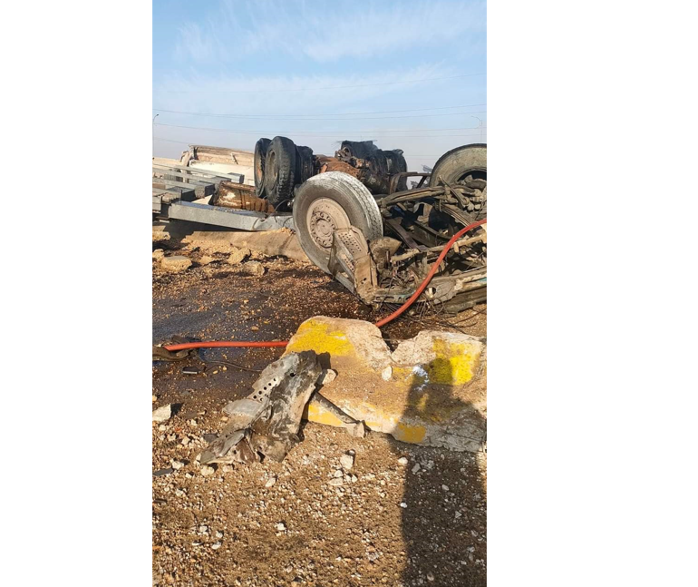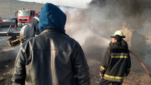 إخماد حريق تريلا بعد انقلابها بالطريق الأوسطي