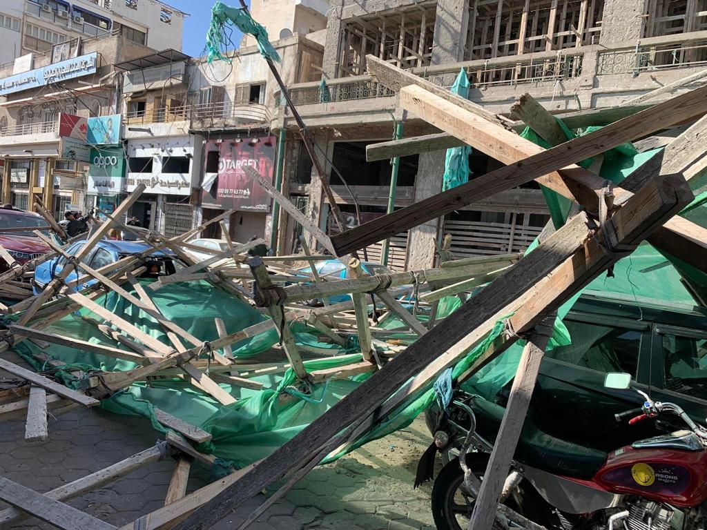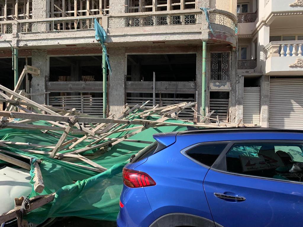 أثناء تجديده.. سقوط سقالات مول سيمون أرزت الأثري على السيارات ببورسعيد | صور