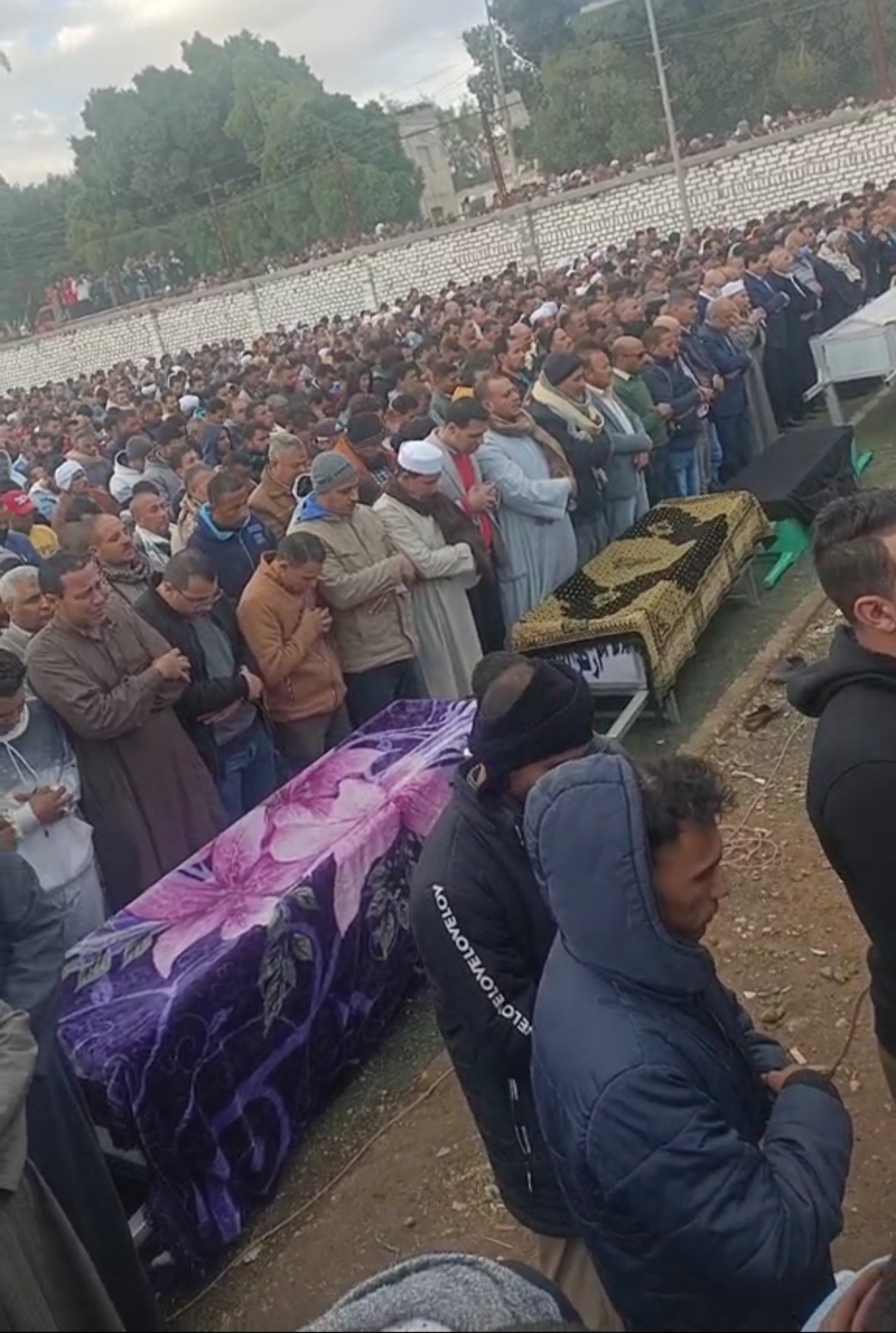 مشهد مهيب في وداع 5 مواطنين من ضحايا حادث أسيوط الغربي أثناء دفنهم ببني سويف| فيديو