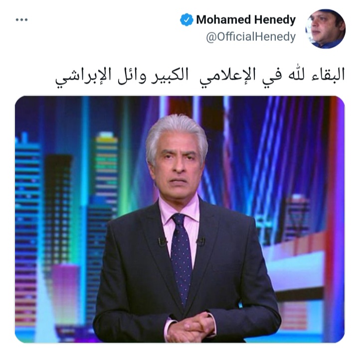 نعى الفنان محمد هنيدي، الإعلامي وائل الإبراشي بعد أن وافته المنية مساء اليوم بعد معاناة مع المرض استمرت لعام عن عمر ناهز 59 عاما.